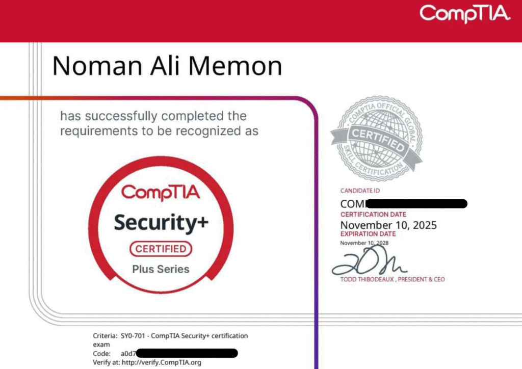 By completing this course, students will be ready to pursue roles such as Security Administrator, SOC Analyst, Network Security Specialist, Systems Administrator, or Junior Penetration Tester. With cybersecurity becoming a top priority across industries, the CompTIA Security+ (SY0-701) serves as the perfect starting point for a global career in information security